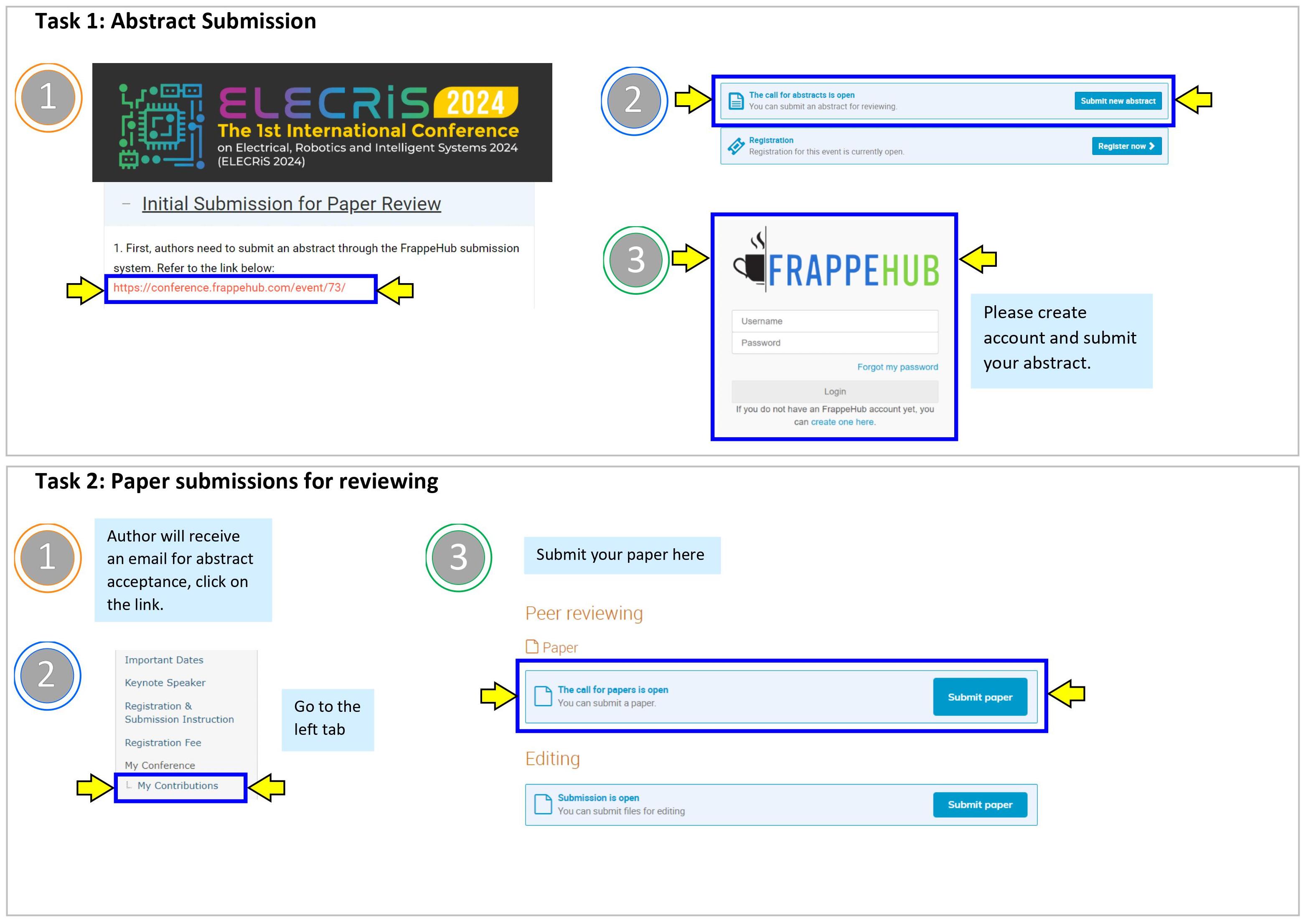 1. Submission of "Abstract" and "Full Paper" must be done electronically through the FrappeHub submission system. Refer to the link below: